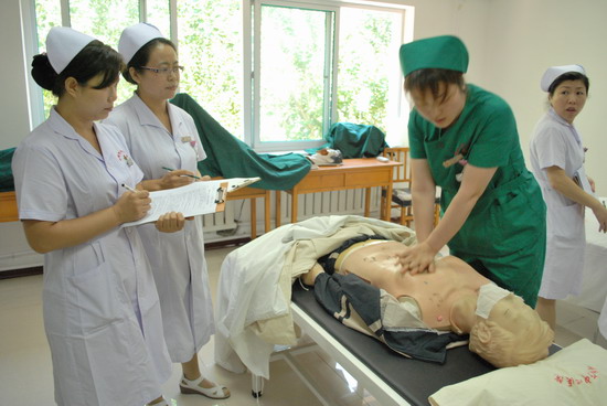 活动要求全院45周岁以下的临床护理人员必须参加,第一轮为理论考试,优秀者进入下一轮技能操作考核,最后将选手的成绩按理论30%、操作70%的比例进行汇总,决出三等奖3名,二等奖2名,一等奖1名。此项活动一经推出就得到了广大护理人员的积极响应,8月10日,全院292名护士参加了第一轮理论考试,从中选出成绩优秀的40人进入下一轮。8月17日,技能操作比赛在我院刚刚装饰一新的护理示教室如期举行,选手们从留置导尿、鼻饲法、口腔护理、吸氧法、静脉输液、心肺复苏六项操作中随机抽取两项进行比赛,护理部组织12名具有丰富考核经验的护士长担任评委,每组2人,现场打分。经过激烈角逐,骨科二病房王坤博获得一等奖;重症医学科祝丽娟、孙李娜获得二等奖;骨科二病房沈辉、骨科一病房李岩、内分泌病房刘佳璐获得三等奖。
