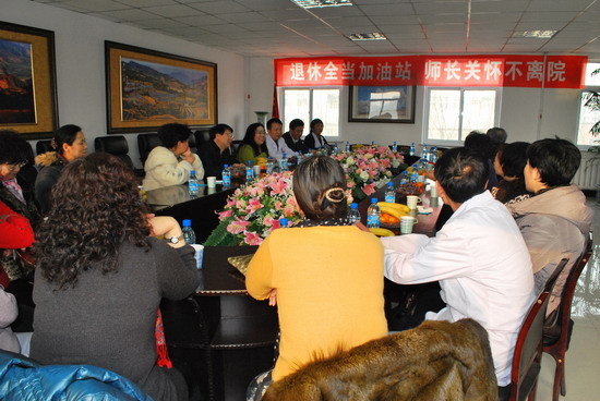 1月18日下午1点半,院工会在医院小会议室举行了2011年退休职工迎新春座谈会,院领导班子参加了座谈会。首先院长南毅做了语重心长的重要讲话,她表示,退休职工依旧是医院的精神力量,在未来医院的发展中离不开他们的支持和关注。随后,30名退休职工畅所欲言,回忆自己对医院的深厚感情,感谢院领导的亲切关爱,大家纷纷表示会一如既往的关注医院的发展,并希望医院的明天更加美好。会后院领导与退休职工在职工餐厅共进晚餐,并为他们颁发了纪念品。