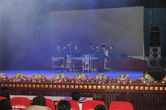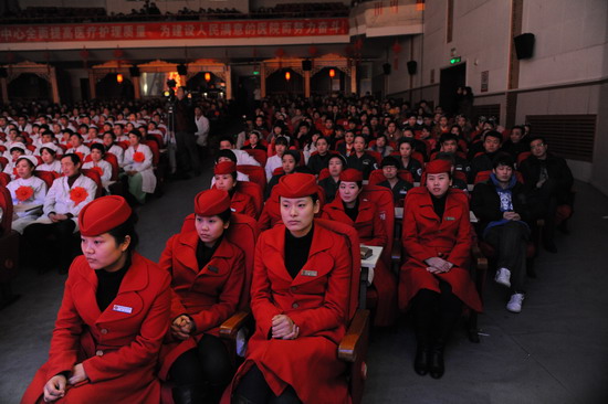 医者仁心励精图治诚信服务谱新曲,天使情怀鞠躬尽瘁和谐医院铸华章。联欢会在喜庆欢腾的开场舞《欢聚一堂》中拉开序幕。随后,乐器联奏、歌伴舞、小品、二重唱、诗朗诵、情景剧等精彩节目轮番登场,所有节目都是各科室人员利用业余时间自编、自导、自演的,整台联欢会自始至终洋溢着喜庆、欢乐、祥和的节日气氛。诙谐、幽默的小品《心与心》是骨一科发生的真人真事,以救治女大学生保住右腿的真实故事为题材道出了医务工作者的苦辣酸甜,观众看后捧腹之余还流下了感动的热泪。情景剧《无限生机》再现了一次交通事故后的抢救过程,表演扣人心弦又真实感人;诗朗诵《向白衣天使致敬》,医务工作者在宛转悠扬的乐曲声中充分表达了对本职工作的执着与热爱;现代民族串烧歌舞《时代畅想》更是别开生面,激情动感的印度歌舞《女友嫁人新郎不是我》、热烈奔放的新疆舞《掀起你的盖头来》、优美欢快的藏族舞《我要去西藏》、英文歌曲《say you say me》等节目青春飞扬,活力四射,更多地展现了我院年轻人多才多艺、激情向上的一面, 68名副高以上专家组成的大合唱是联欢会的压轴戏,演出阵容强大,院标的造型新颖生动,专家们深情演唱了《在希望的田野上》、《茉莉花》、《喀秋莎》、《爱我中华》等传统曲目,伴随嘹亮的歌声联欢会圆满落下帷幕。在近2个小时的演出过程中,演员们精神饱满,观众们情绪高涨。嘹亮的歌声、飞扬的舞姿、热烈的掌声不时将晚会一次次推向高潮。