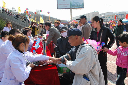 内科主任医师曹桂英、外科主任医师刘长申、副主任医师王晓辉、口腔科主任医师何丽俊、感染科主任医师方红等10名专家和护士参加了此次义诊活动,为数百名市民进行了测血压、量体重,并对高血压、心脏病、骨质增生、疝气等一些常见性疾病的相关知识进行了现场解答,同时免费发放医疗保险、甲流预防等相关知识宣传单近千份,健康保健手册百余册,感染科主任医师方红在义诊现场就手足口病预防的相关知识接受了媒体的采访。市中心医院全体医护人员愿竭诚为家乡父老乡亲的健康保驾护航。