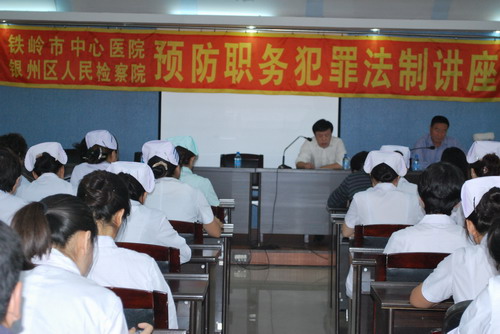 9月8日下午,我院在学术报告厅举办了预防职务犯罪法制教育讲座。特邀请了铁岭市银州区检查院犯罪预防科佟国柱科长主讲。院长南毅、党委书记徐岱忠、副院长黄业斌、吕希友、马明、李树普及全院中层干部等150多人参加了此次讲座。
